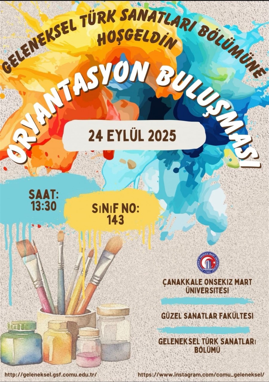 24.09.2025 tarihinde saat 13:30'da bölüm öğretim elemanlarımız ve öğrencilerimiz ile birlikte aramıza yeni katılan 1. Sınıf öğrencilerimiz için Oryantasyon Buluşması gerçekleştirilecektir.